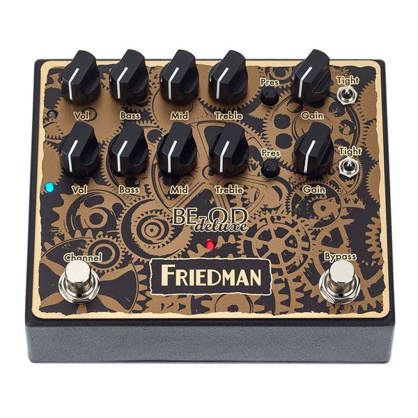 Friedman BE-OD Deluxe Limited "Clockwork" Finish 是 Friedman 旗艦級破音效果器的限量外觀版本。這款效果器在保留 BE-100 傳奇真空管音箱音色的基礎上,換上了極具工業美感的「發條裝置(Clockwork)」獨家彩繪外殼。